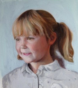 portrait of Millie, oil on board, 2nd glaze over grisaille, portrait painting by british portrait artist Matt Harvey